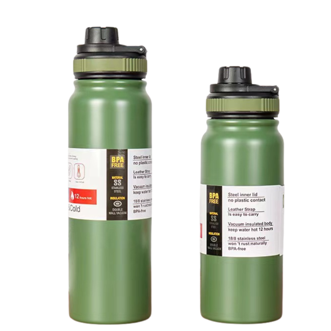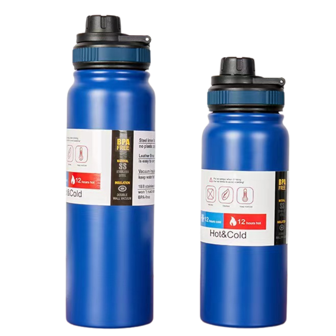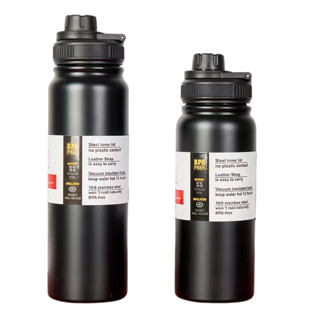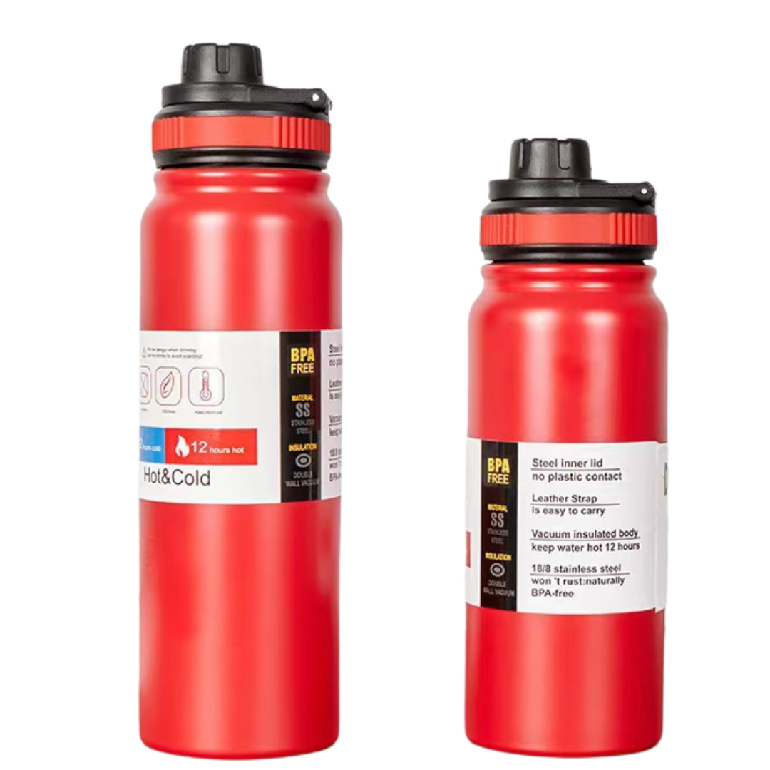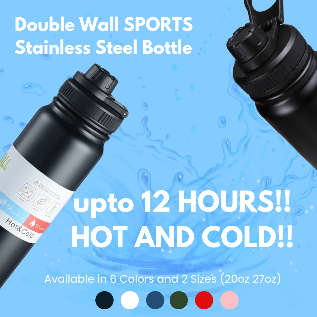 PREMIUM DOUBLE WALL VACUUM INSULATED STAINLESS STEEL SPORTS BOTTLE. Keeps your drink HOT and COLD for upto 12 hours. Built with a secure screw-top spout lid, easy to carry foldable handle and a durable, leak-proof design, they’re perfect for workouts, commutes, adventures, and everything in between.