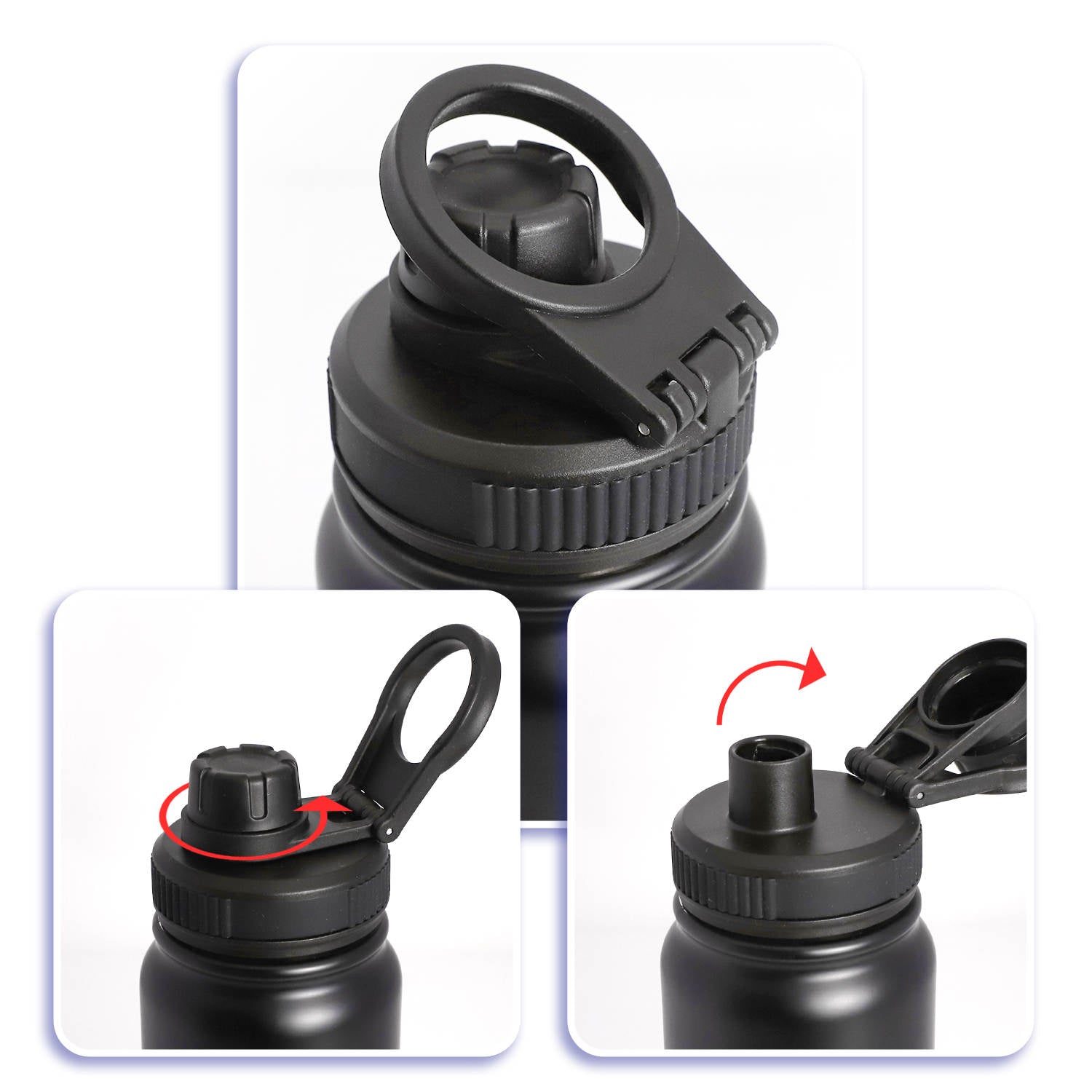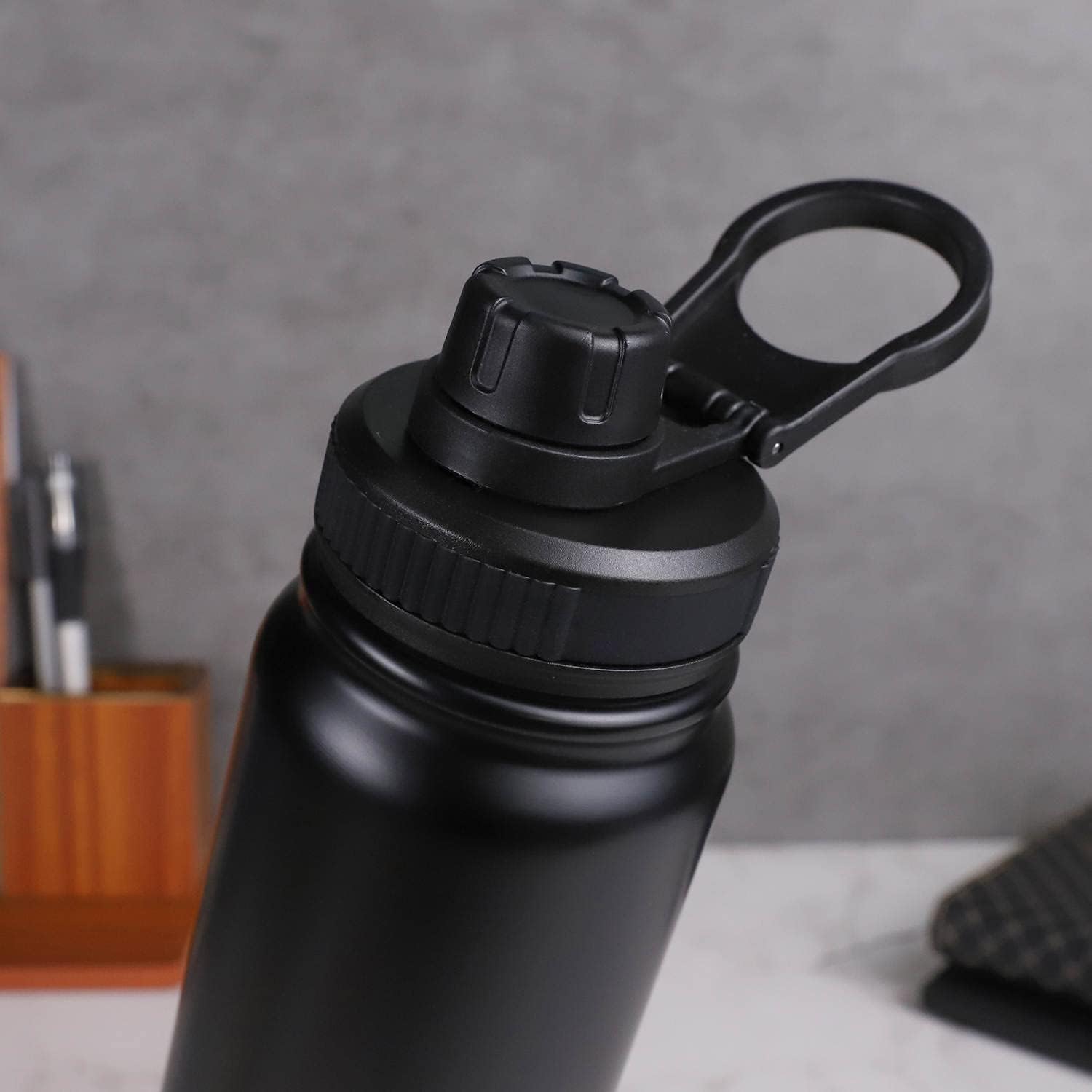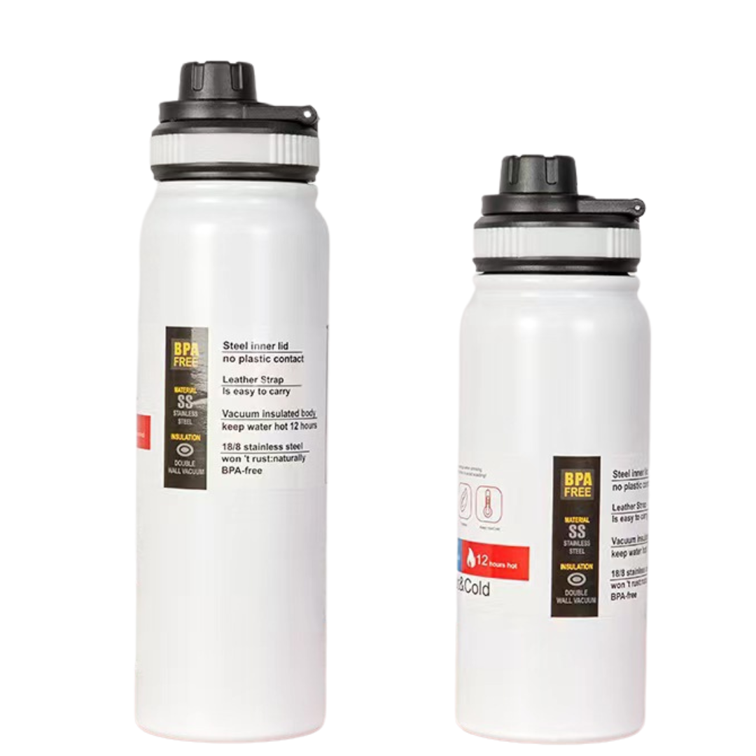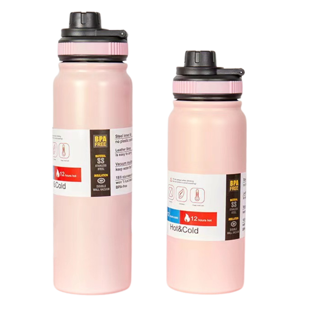PREMIUM DOUBLE WALL VACUUM INSULATED STAINLESS STEEL SPORTS BOTTLE. Keeps your drink HOT and COLD for upto 12 hours. Built with a secure screw-top spout lid, easy to carry foldable handle and a durable, leak-proof design, they’re perfect for workouts, commutes, adventures, and everything in between.